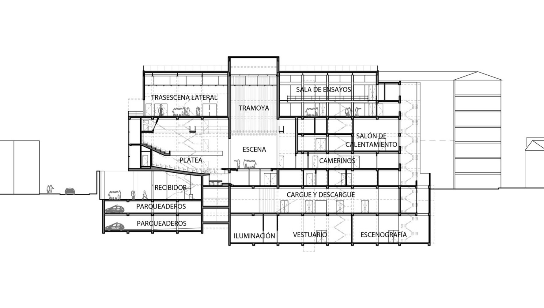 Pese a la tremenda complejidad del programa, magnificada por las difíciles condiciones de tamaño y vecindad del predio, el proyecto pretende principalmente presentar una propuesta en la que los aspectos funcionales, técnicos y teatrales estén resueltos de la mejor manera. Es arquitectura que presenta soluciones verdaderamente útiles. Con el fin de minimizar el impacto negativo que podría producirse por la aparición de un gran edificio en tan frágil contexto, el proyecto pretende por un lado solucionar el empate de los parámetros de 2 formas diferentes y por otro aprovechar la coyuntura para reforzar la vocación peatonal de la calle 11 y darle importancia a la parte trasera de la catedral de Bogotá. Se proponen también empates estrictos contra los volúmenes de los vecinos tanto en las alturas como en el tamaño de los patios. Es arquitectura que contribuye a la adecuada conformación de la ciudad.