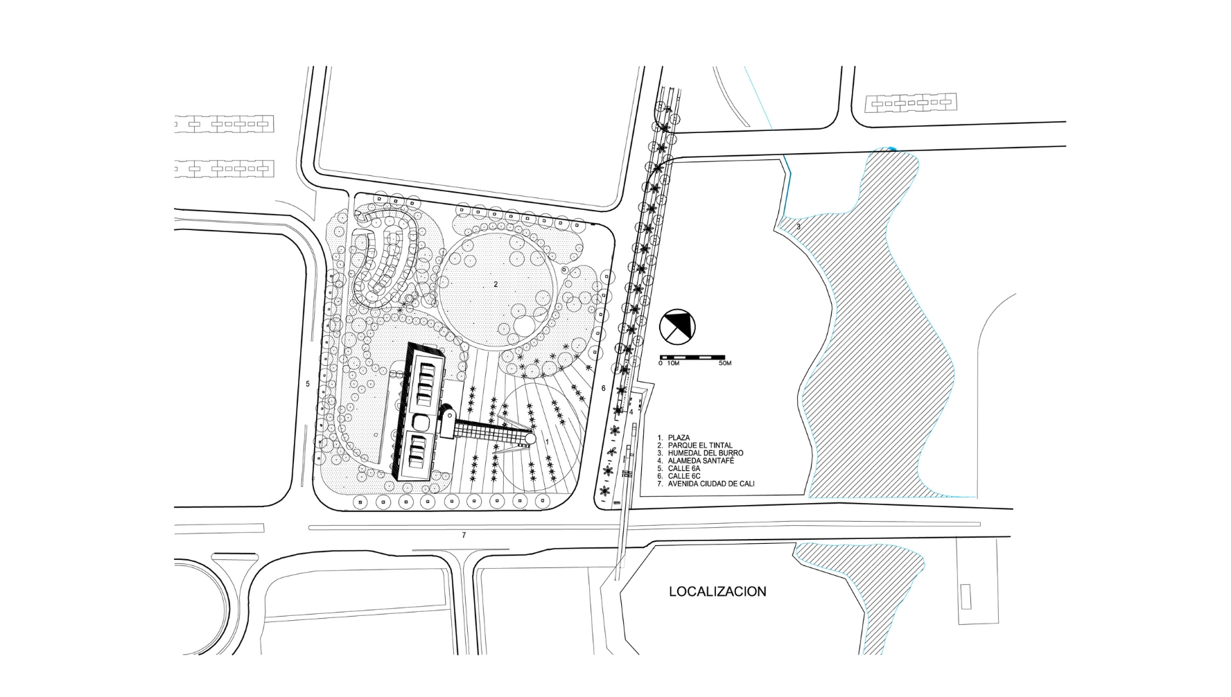 La Biblioteca El Tintal resulta de reutilizar una antigua planta de transferencia de basuras en desuso y de transformar el predio de 5 hectáreas en un parque sobre la Avenida Ciudad de Cali con calle 6ª. El edificio rescatado de la ruina era una nave fabril de 25 metros de ancho por 72 metros de largo con un área total de 3.600 m², distribuidos en dos pisos de considerable altura. Construido con una sólida estructura de concreto de grandes luces se podÃa adaptar al nuevo uso potencializando su aspecto robusto e industrial.