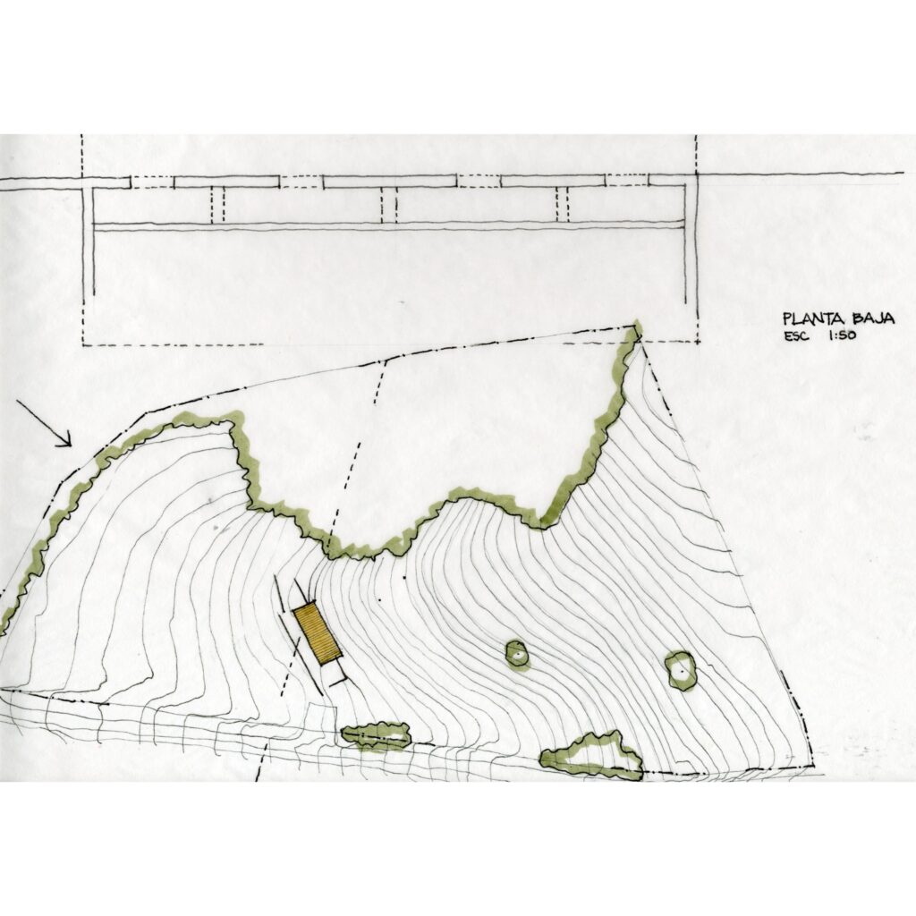 La pequeña vivienda campestre, pensada para ser habitada por una sola pareja solamente, tenía el reto de poder construirse en este lugar tan alejado sin recurrir a intervenciones muy engorrosas en el sitio y con unos recursos limitados. Esta es la razón principal para plantear una construcción lo más prefabricada posible, con una estructura metálica muy ligera facilitando enormemente el montaje en sitio.