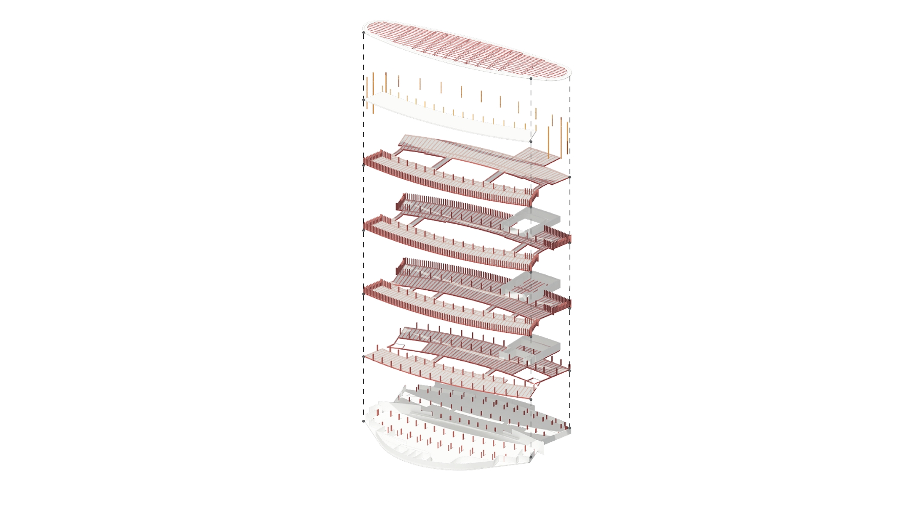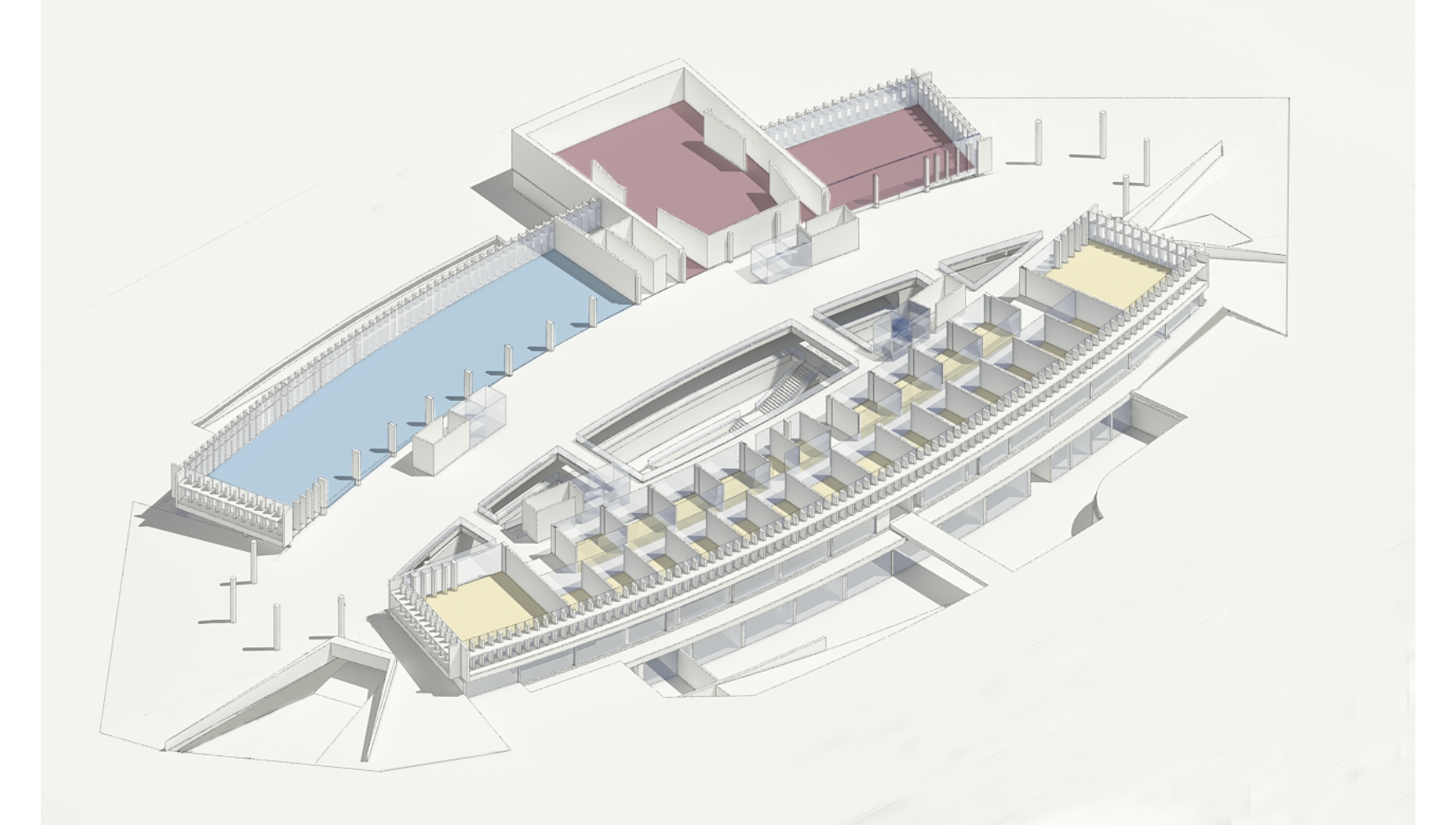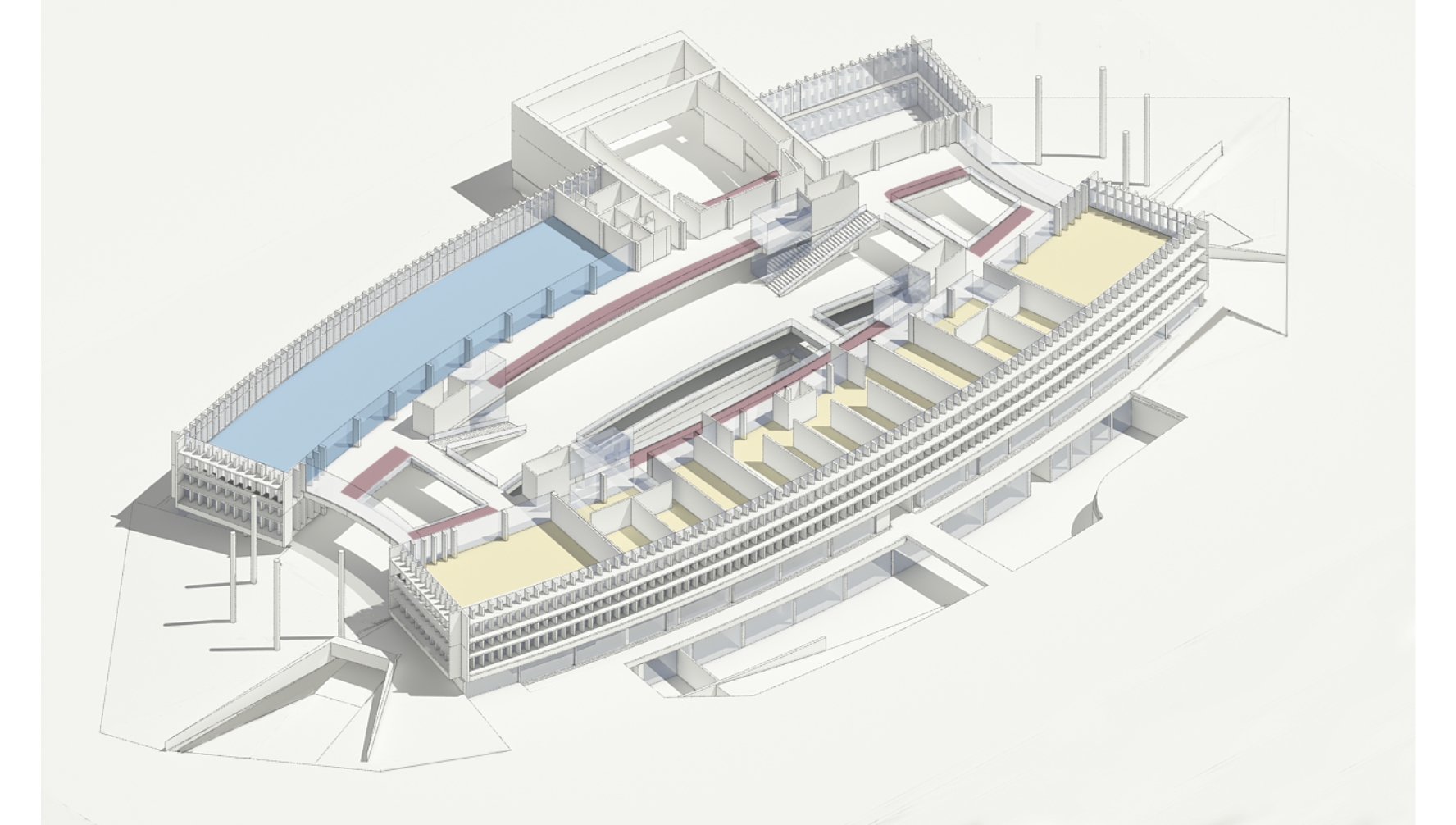 Tipológicamente el edificio evoca un teatro; sus balcones, un gran escenario y la cubierta, como una gran tramoya: el espacio de la representación. El encuentro de las diferentes comunidades ocurre en el espacio central, la gran terraza y las circulaciones del edificio, se consideran como los espacios que más tienen capacidad para enseñar los valores del arte. Se propone un espacio central el cual puede ser adaptado y modificado por los estudiantes con sus trabajos y montajes; dando como resultado un edificio en construcción permanente, porque atiende la educación como un proceso flexible y de constante cambio.