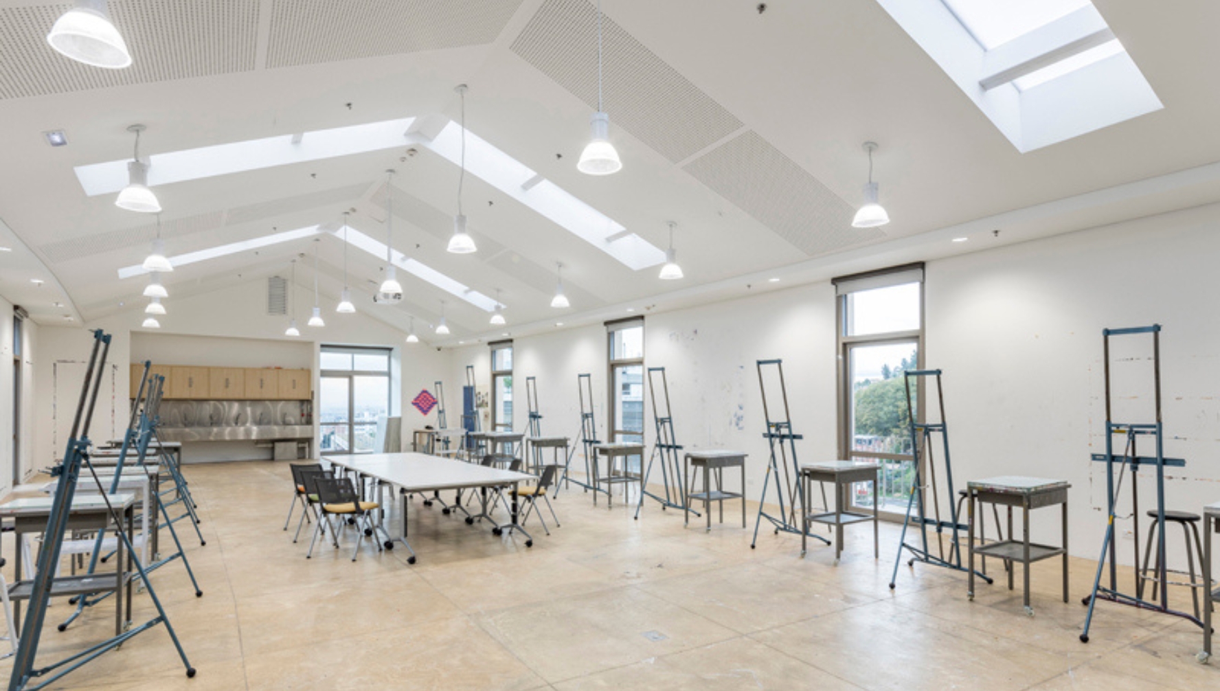 Para albergar aulas, talleres y estudios para los departamentos de artes y diseño industrial, el proyecto interviene dos Bloques existentes de la Universidad. La intervención sobre el Bloque R-213 busca la conservación de la fachada norte y el portal original de entrada al Campito San José sobre la calle 19A y la recuperación de las fachadas este y sur.