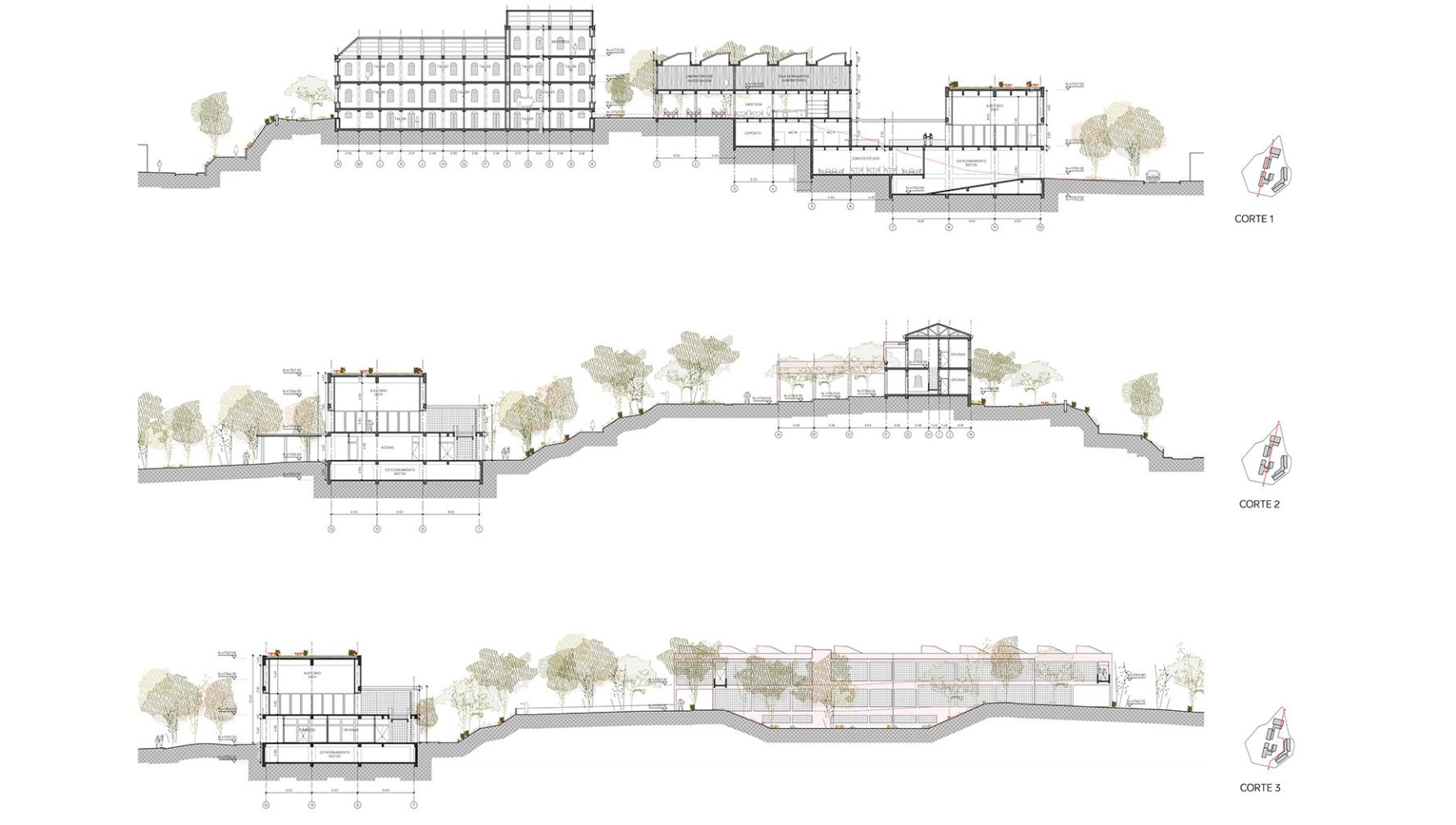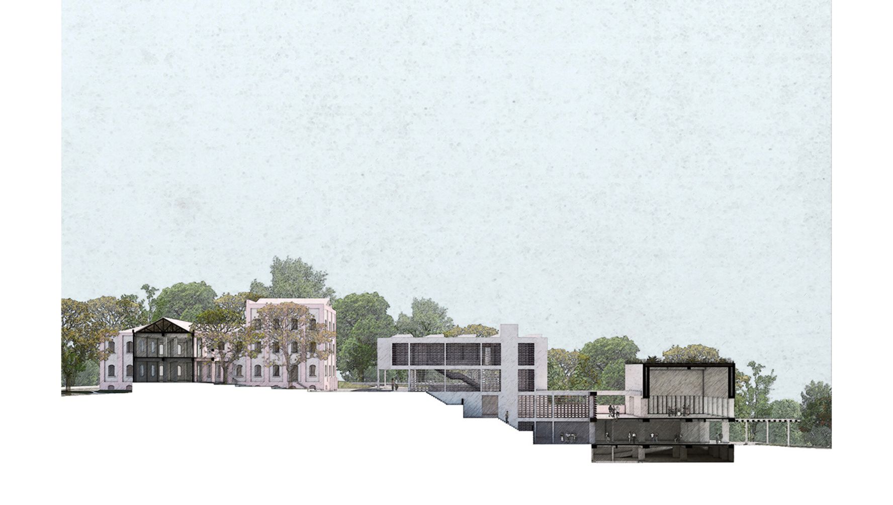 En cuanto a su materialidad, Los nuevos edificios tendrán un material único en sus fachadas y dialogarán con el edificio patrimonial en su ritmo de aperturas y alturas generales. El límite entre el interior y el exterior de los edificios se plantea con fachadas en calados y persianas que permiten su ventilación natural, aprovechando el clima templado de la ciudad.