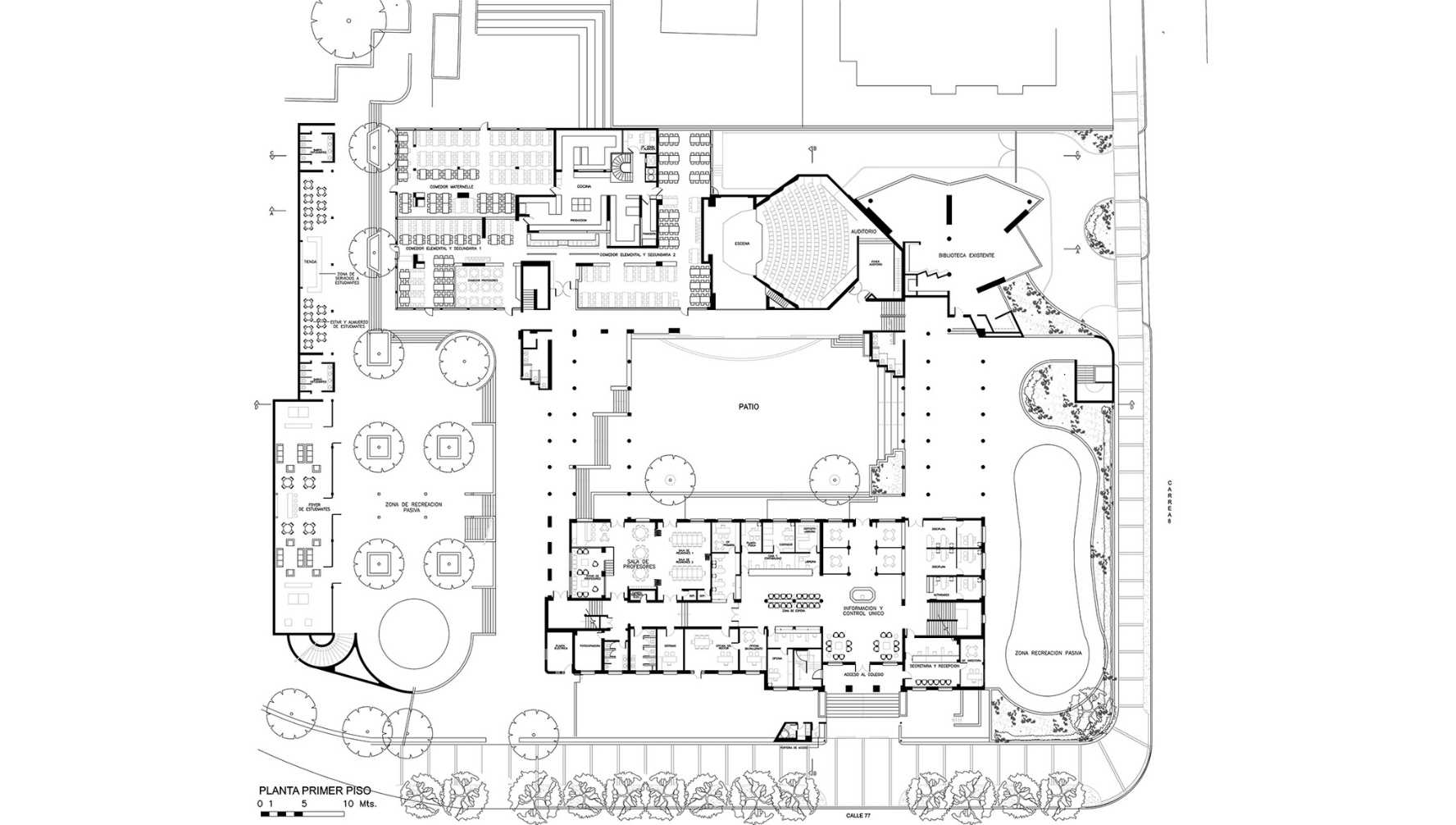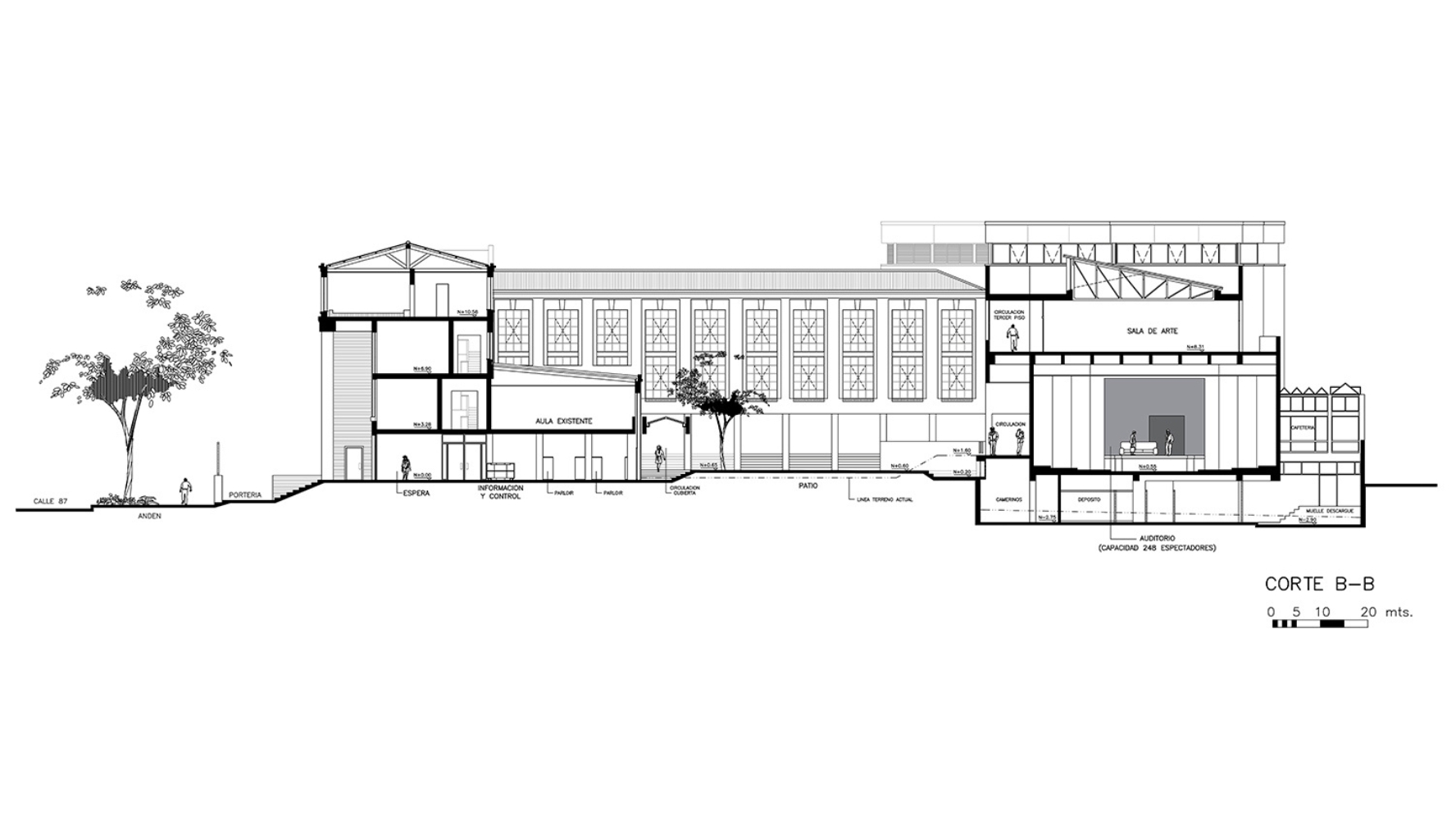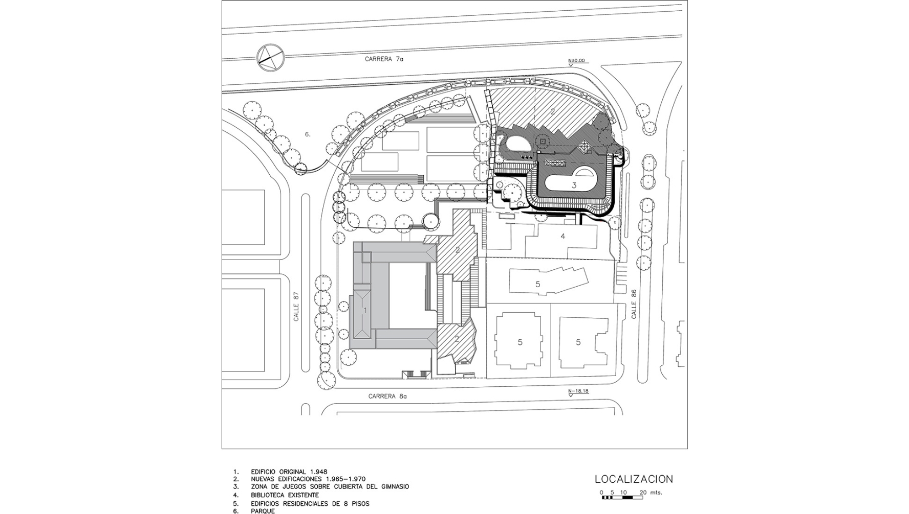 Pieza fundamental del plan de ordenamiento de 1989, que evitó el éxodo del Liceo hacia el norte, como otros colegios, este edificio demuestra cómo ciertas soluciones contribuyen, sin densificación, al aprovechamiento eficiente de terrenos escasos y a la armonía entre usos residencia les e instituc ionales.