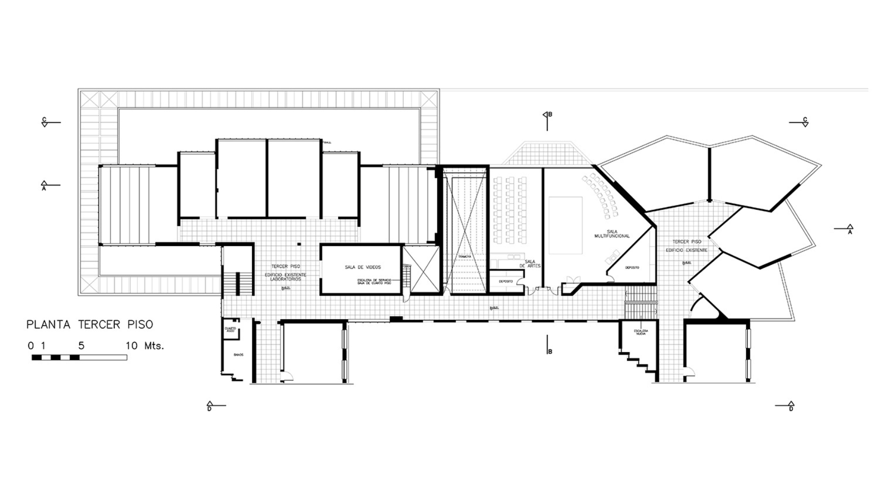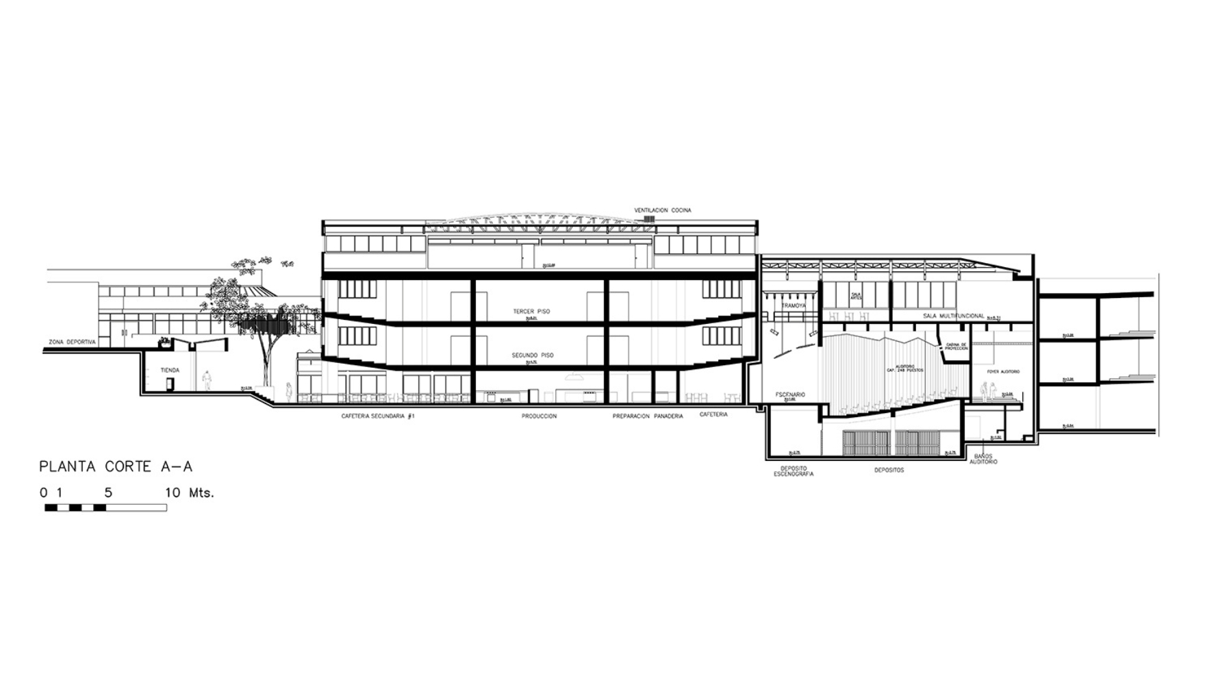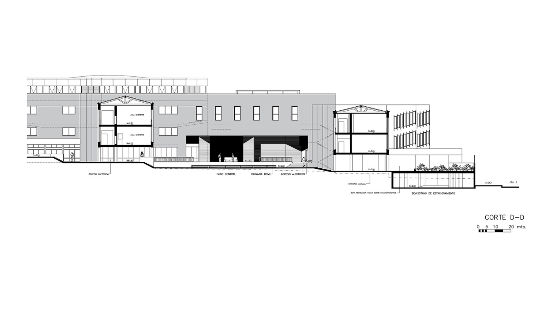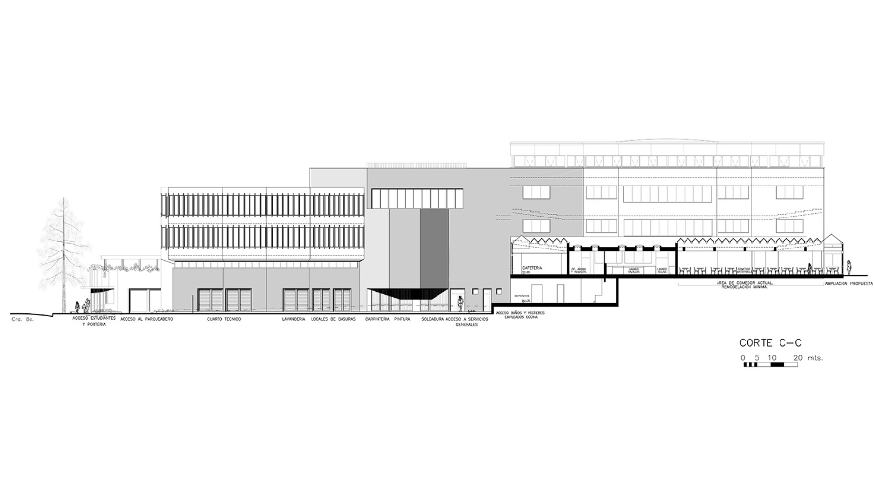 Pieza fundamental del plan de ordenamiento de 1989, que evitó el éxodo del Liceo hacia el norte, como otros colegios, este edificio demuestra cómo ciertas soluciones contribuyen, sin densificación, al aprovechamiento eficiente de terrenos escasos y a la armonía entre usos residencia les e instituc ionales.