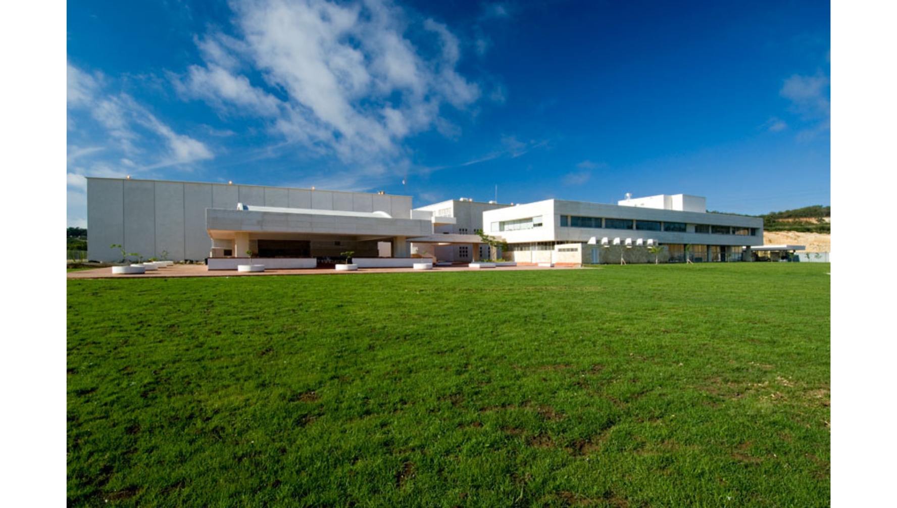 Los edificios más importantes están hechos con concreto blanco, empleando dos sistemas constructivos. Mientras que las oficinas y el casino se construyeron de forma tradicional, con una estructura principal fundida en sitio sobre formaletas, las bodegas cuentan con un sistema constructivo de fácil ampliación y modificación conocido como “tilt-up”. Este sistema resulta de la fundición de grandes pantallas sobre el piso que, al ser erigidas, encajan unas con otras, conformando la estructura. Este sistema de construcción rápida permite la movilidad de paneles para modificaciones y empates con nuevos paneles, dejando abierta la posibilidad de ampliaciones, factor muy importante para la empresa.
