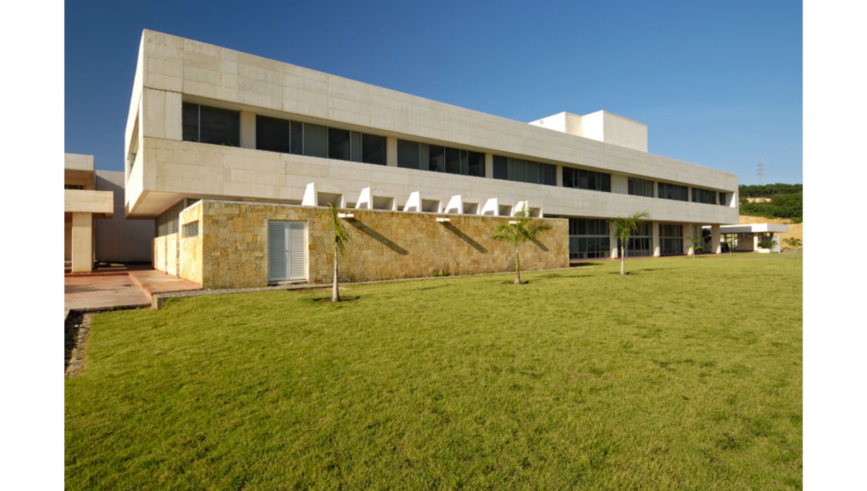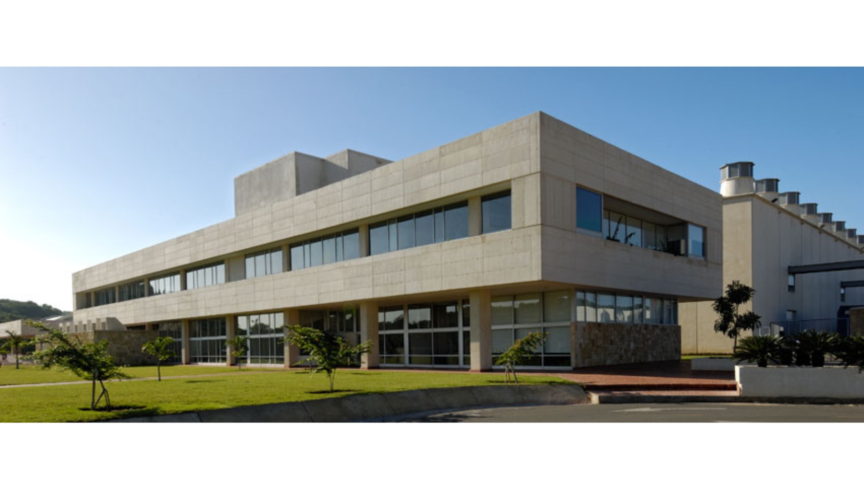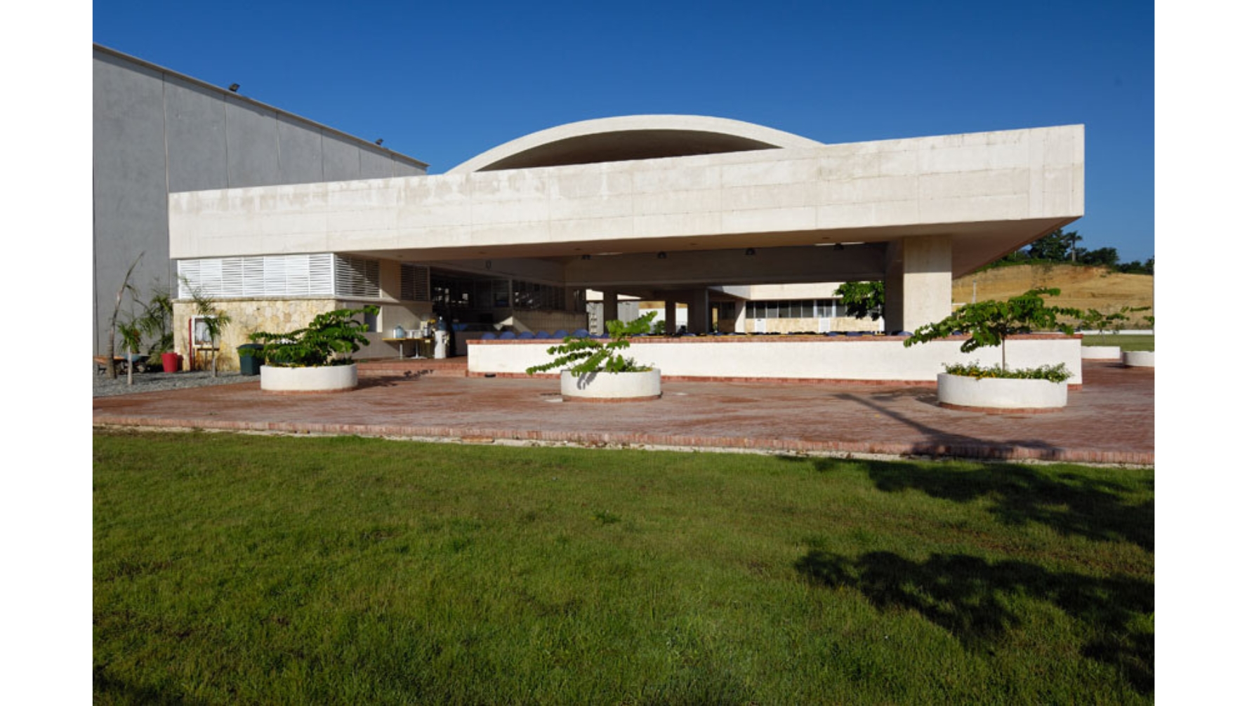 La zona de servicios y soporte de las máquinas productoras se encuentra en un edificio independiente, evitando así la generación excesiva de calor y energía dentro de las bodegas. Si bien las cubiertas y las fachadas se comportan como elementos de protección climática hacia el exterior -en una región azotada regularmente por huracanes-, el adecuado manejo de elementos naturales conserva los interiores frescos.