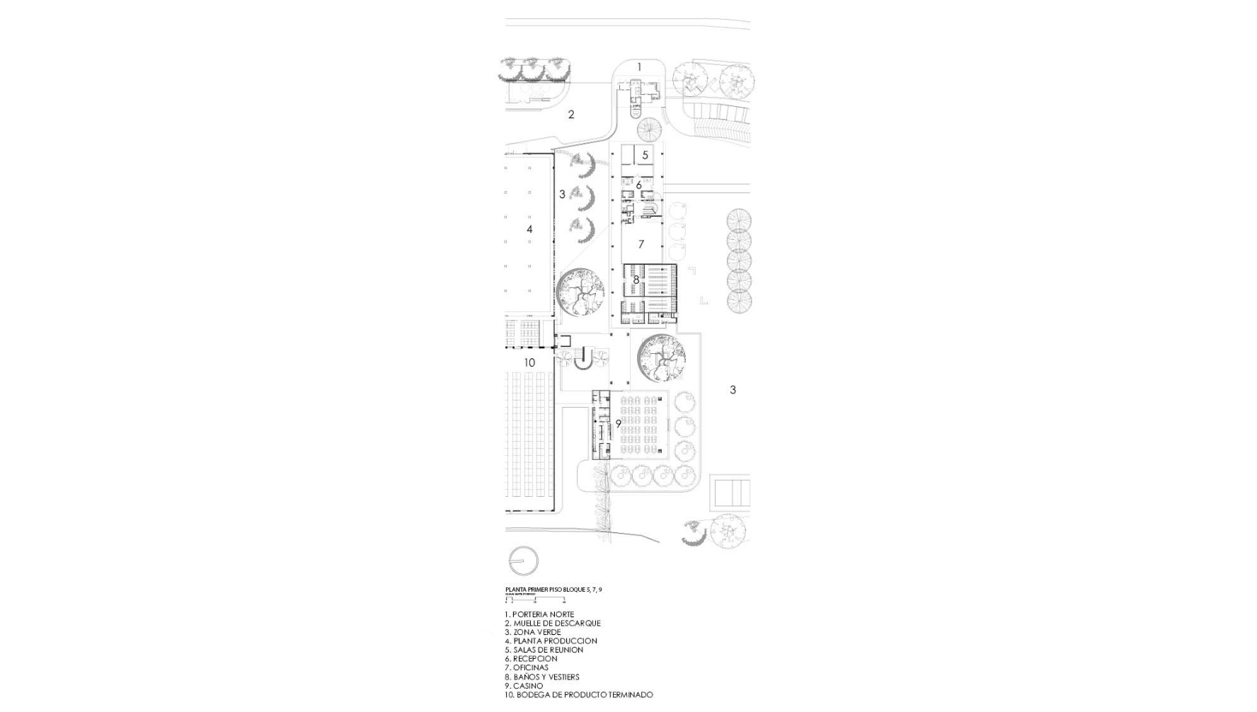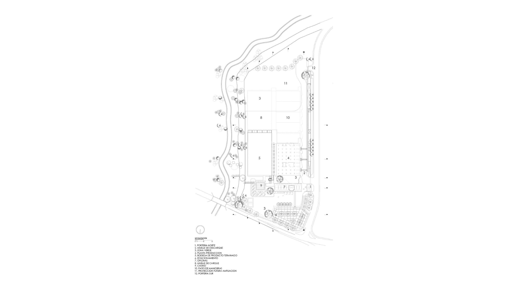 Localizada en una región de clima cálido, la planta responde a diversas variables del lugar y de la actividad, como la cercanía del Arroyo Porquero, la ubicación respecto al sol y a los vientos, o las posibilidades de crecimiento a futuro. El estudio del lugar determina la distribución de los espacios y el emplazamiento del complejo sobre el costado norte del lote, dejando una gran zona libre de aislamiento contra la carretera. Por su cercanía con la vía, las oficinas y el casino son la cara visible a la ciudad, mientras que las bodegas, ubicadas en la parte posterior, aprovechan los vientos predominantes que llegan desde el este, para ventilar y renovar el aire constantemente, por medio de distintos elementos de manejo bioclimático, como termosifones y protectores solares.
