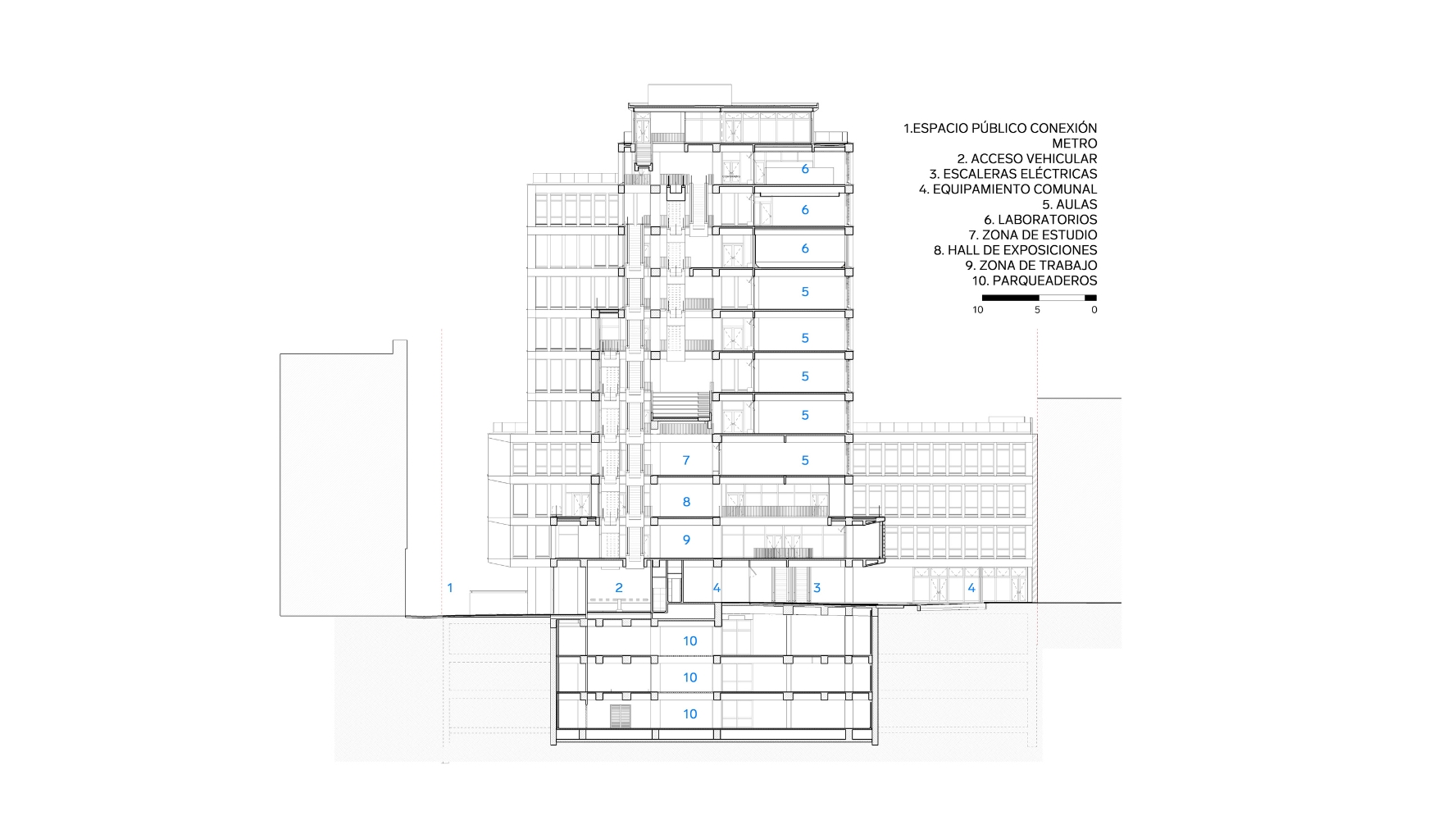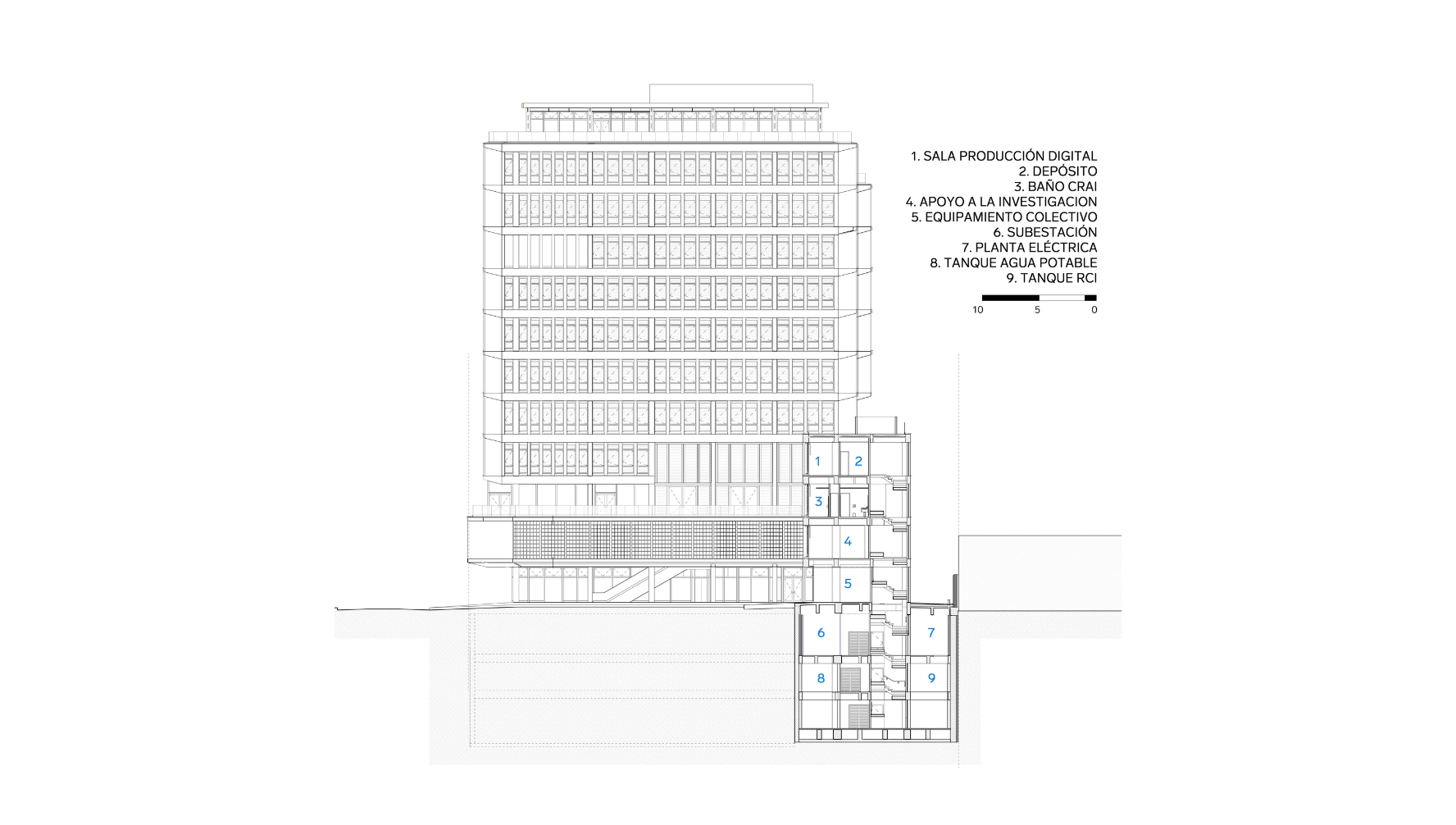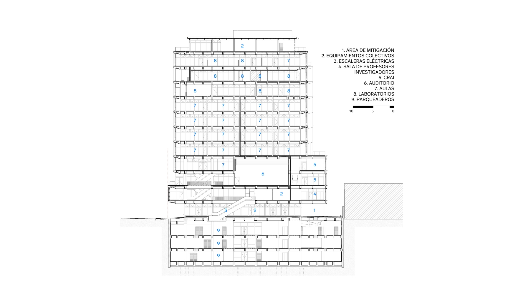 Universidad Cooperativa de Colombia – Edificio de aulas, laboratorios y bienestarBogotá, 2019-Actualidad| En Construcción 15.767 m² | Diseño Arquitectónico, Paisajístico. LocalizaciónPiso 1Piso 2Piso 3Piso 6Piso 11Piso 12Sótano 1Fachada surFachada norteFachada occidentalFachada orientalCorte 1Corte A Ficha Técnica y Memoria del Proyecto – –