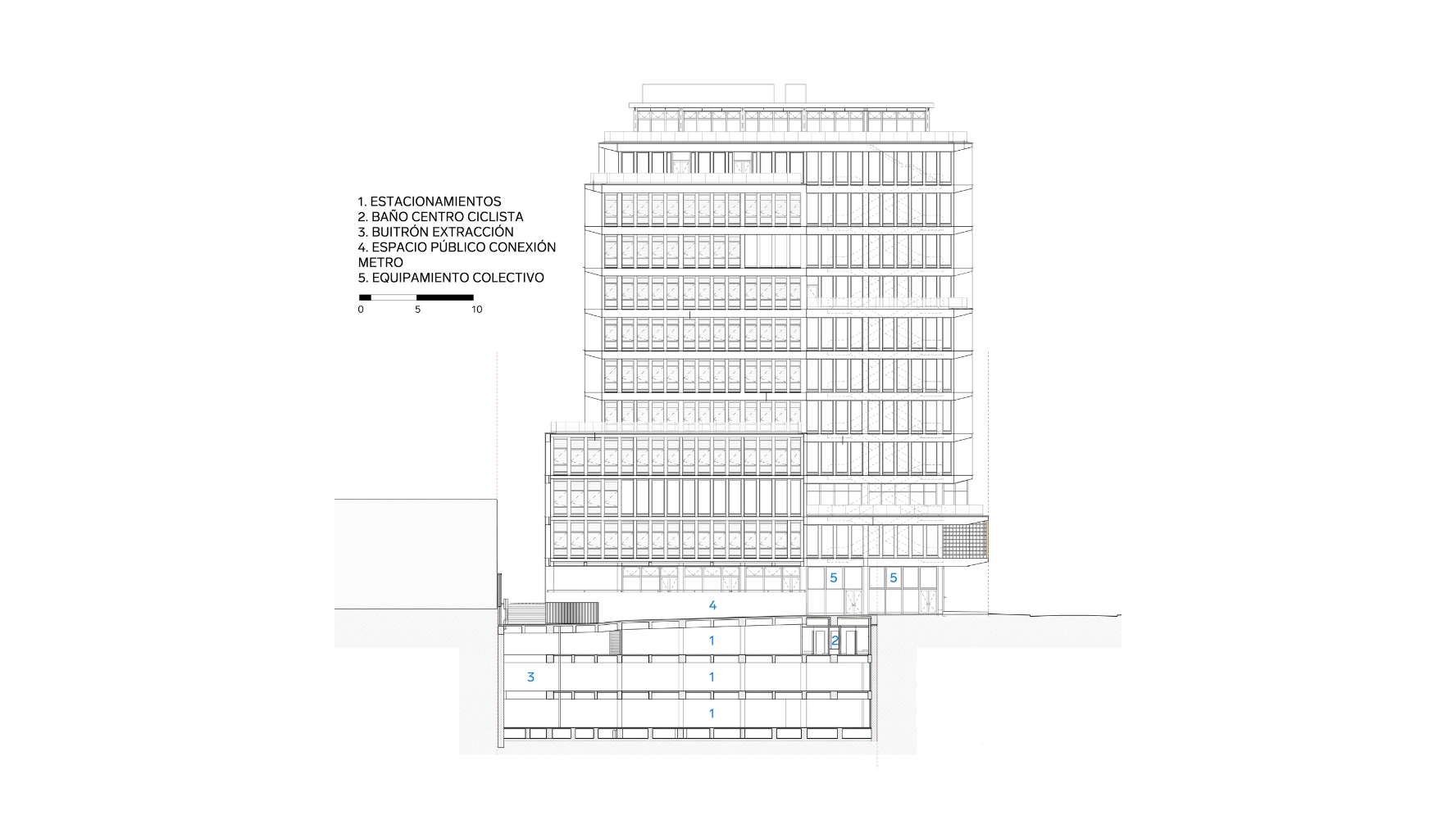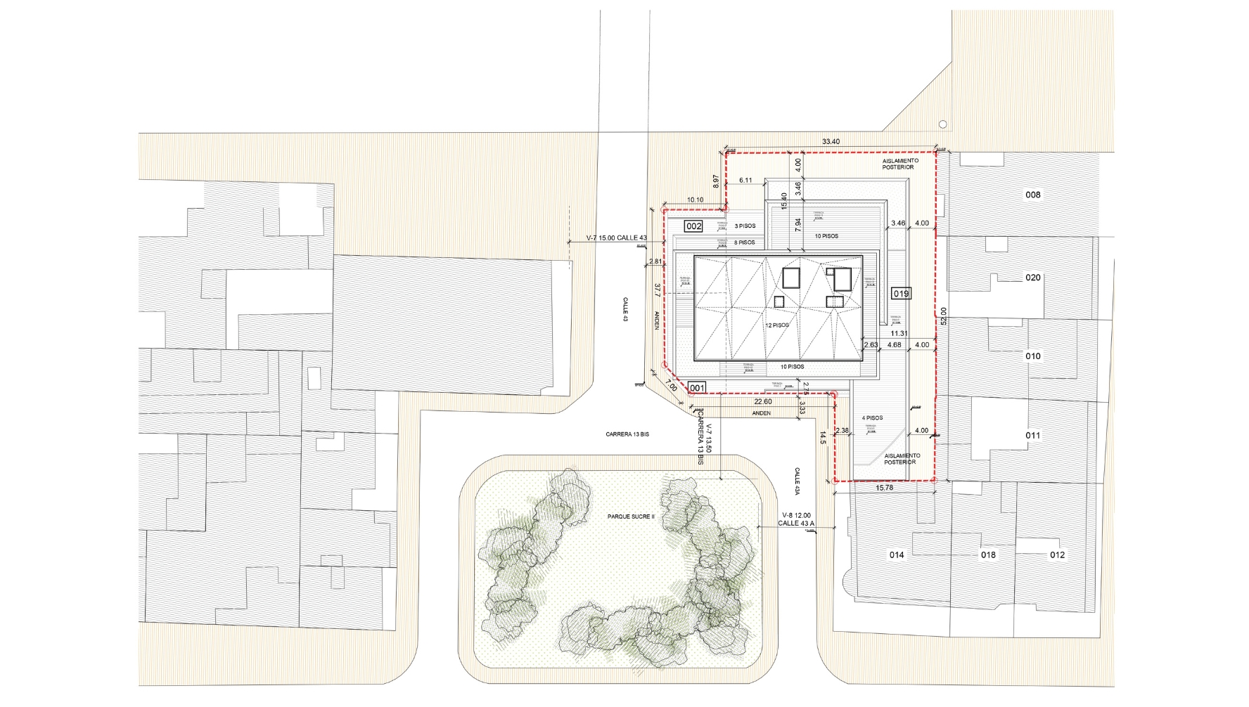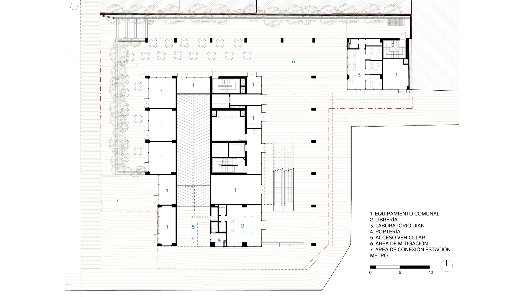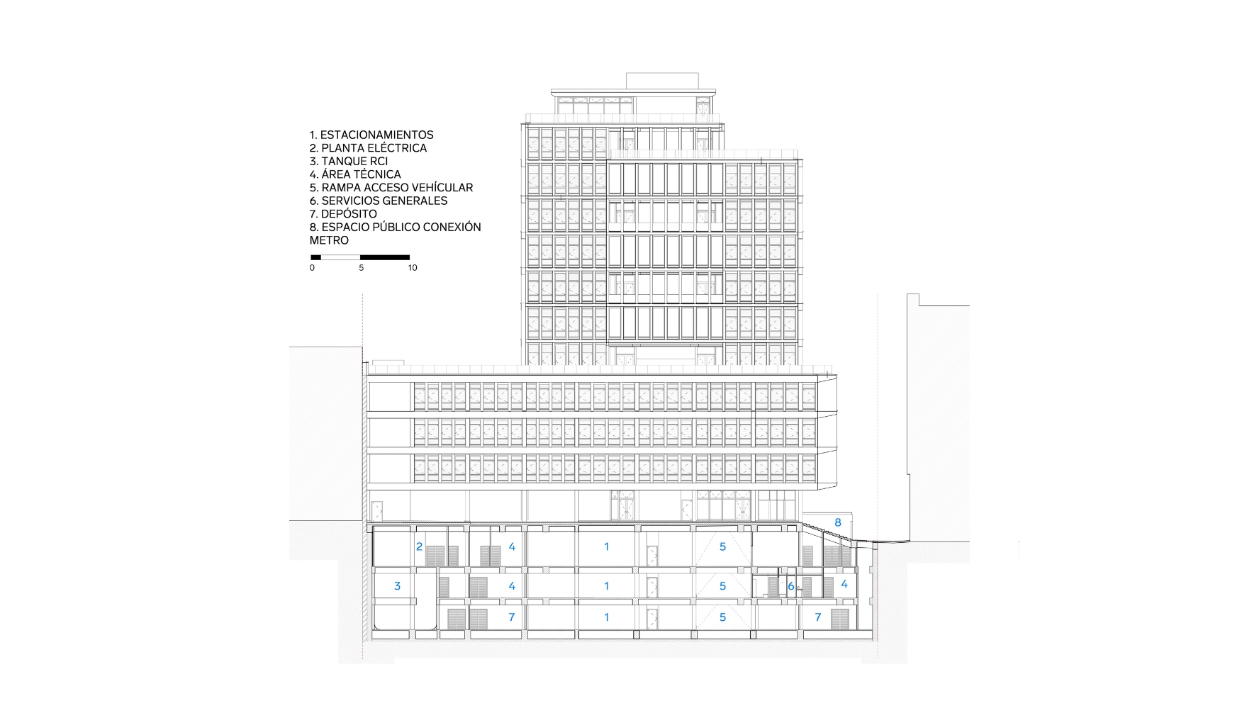 Universidad Cooperativa de Colombia – Edificio de aulas, laboratorios y bienestarBogotá, 2019-Actualidad| En Construcción 15.767 m² | Diseño Arquitectónico, Paisajístico. LocalizaciónPiso 1Piso 2Piso 3Piso 6Piso 11Piso 12Sótano 1Fachada surFachada norteFachada occidentalFachada orientalCorte 1Corte A Ficha Técnica y Memoria del Proyecto – –